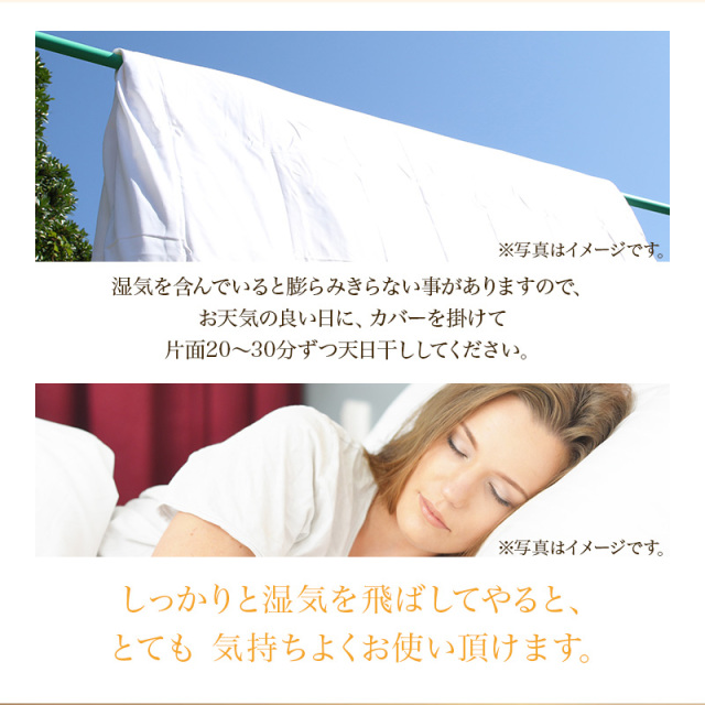 (2)お天気の良い日に、カバーを掛けて片面20~30分ずつ天日干ししてください。