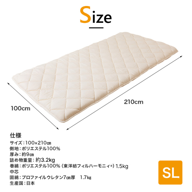 | 詰め物重量 | 約3.2kg |