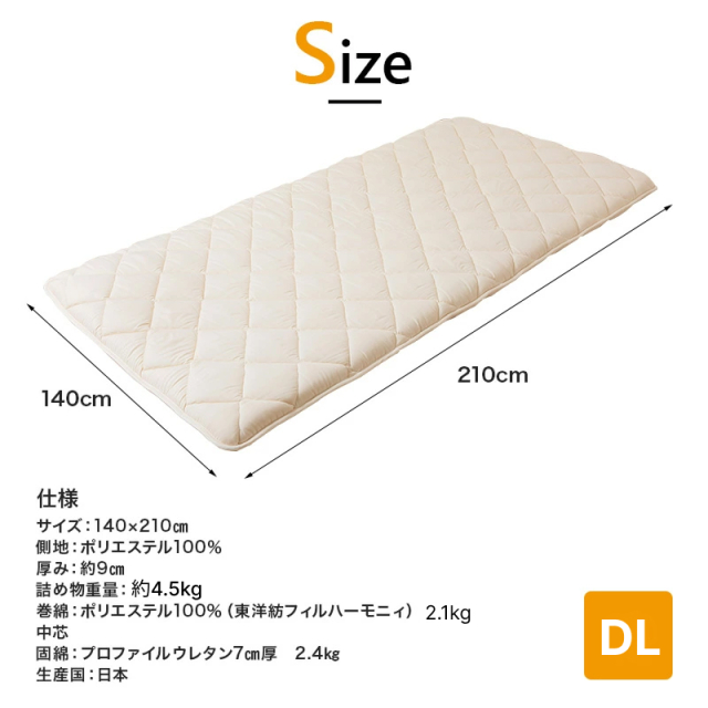 | 詰め物重量 | 約4.5kg |