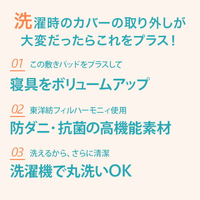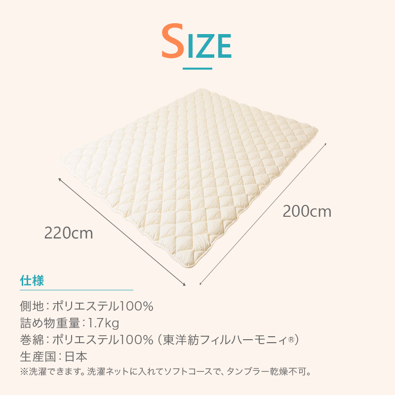 | 詰め物重量 | 幅200cm:1.5kg 幅220cm:1.7kg |