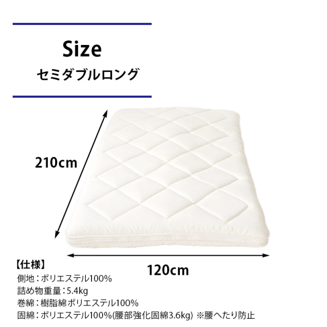 | サイズ | セミダブル:120×200cm セミダブルロング:120×210cm |