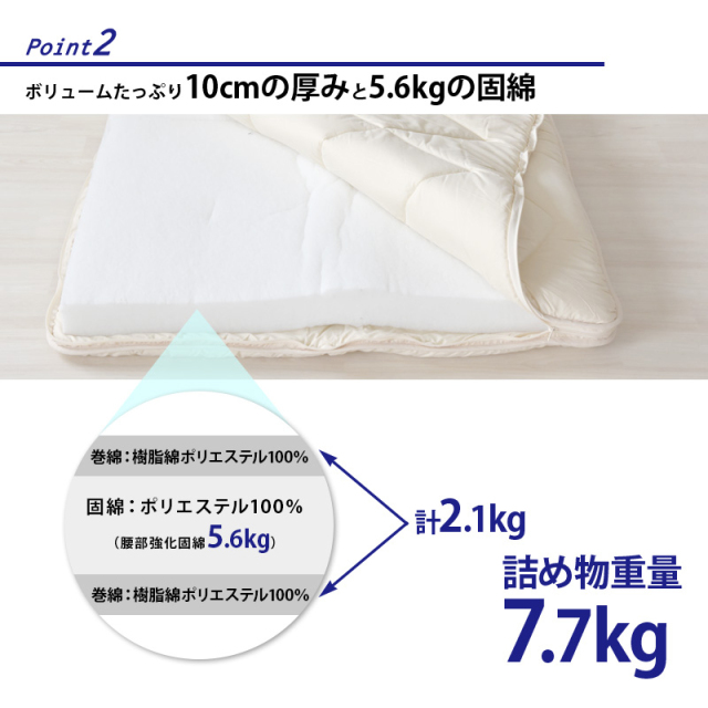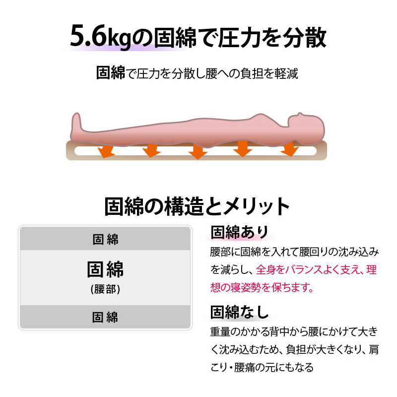 | 中芯 | ポリエステル100%(固綿5.6kgハードタイプ) |