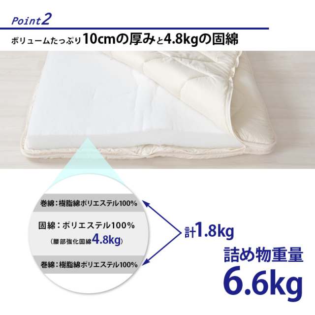 | 中芯 | ポリエステル100%(固綿4.8kgハードタイプ) |
