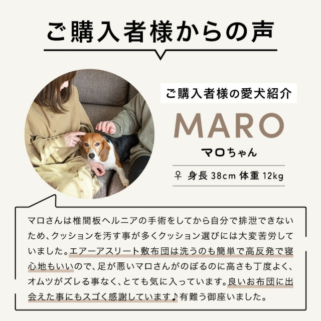 ひなたのふとん HOME 商品一覧 マットレス ペット用 ペットマット エアーアスリート 専用カバー 洗える 老犬介護用品 老犬 ry0202ka 価格: ¥3,990 (税込) ~ ¥10,500 (税込) [ポイント還元 39ポイント~] 販売期間: 数量: 個 サイズカラー価格在庫購入SSパウダーピンク¥3,990(税込)○ ソーダ¥3,990(税込)○ バニラ¥3,990(税込)○ ココアブラウン¥3,990(税込)○ アッシュグレー¥3,990(税込)○ Sパウダーピンク¥4,900(税込)○ ソーダ¥4,900(税込)○ バニラ¥4,900(税込)○ ココアブラウン¥4,900(税込)○ アッシュグレー¥4,900(税込)○ Mパウダーピンク¥5,900(税込)○ ソーダ¥5,900(税込)○ バニラ¥5,900(税込)○ ココアブラウン¥5,900(税込)○ アッシュグレー¥5,900(税込)○ Lパウダーピンク¥7,200(税込)○ ソーダ¥7,200(税込)○ バニラ¥7,200(税込)○ ココアブラウン¥7,200(税込)○ アッシュグレー¥7,200(税込)○ LLパウダーピンク¥8,900(税込)○ ソーダ¥8,900(税込)○ バニラ¥8,900(税込)○ ココアブラウン¥8,900(税込)○ アッシュグレー¥8,900(税込)○ 3Lパウダーピンク¥10,500(税込)○ ソーダ¥10,500(税込)○ バニラ¥10,500(税込)○ ココアブラウン¥10,500(税込)○ アッシュグレー¥10,500(税込)○ サイズカラー価格在庫購入SSパウダーピンク¥3,990(税込)○ ソーダ¥3,990(税込)○ バニラ¥3,990(税込)○ ココアブラウン¥3,990(税込)○ アッシュグレー¥3,990(税込)○ Sパウダーピンク¥4,900(税込)○ ソーダ¥4,900(税込)○ バニラ¥4,900(税込)○ ココアブラウン¥4,900(税込)○ アッシュグレー¥4,900(税込)○ Mパウダーピンク¥5,900(税込)○ ソーダ¥5,900(税込)○ バニラ¥5,900(税込)○ ココアブラウン¥5,900(税込)○ アッシュグレー¥5,900(税込)○ Lパウダーピンク¥7,200(税込)○ ソーダ¥7,200(税込)○ バニラ¥7,200(税込)○ ココアブラウン¥7,200(税込)○ アッシュグレー¥7,200(税込)○ LLパウダーピンク¥8,900(税込)○ ソーダ¥8,900(税込)○ バニラ¥8,900(税込)○ ココアブラウン¥8,900(税込)○ アッシュグレー¥8,900(税込)○ 3Lパウダーピンク¥10,500(税込)○ ソーダ¥10,500(税込)○ バニラ¥10,500(税込)○ ココアブラウン¥10,500(税込)○ アッシュグレー¥10,500(税込)○ 返品についての詳細はこちら 商品説明 サイズSS:60×42cm S:75×60cm M:75×75cm L:110×75LL:125×95cm 3L:145×110 側地ポリエステル100% 中綿 ポリエステル100% (東洋紡フィルハーモニィ)SS:0.3kg S:0.4kg M:0.6kg L:0.8kg LL:1.2kg 3L:1.5kg 総重量 SS:0.4kg S:0.5kg M:0.7kg L:1.0kg LL:1.5kg 3L:2.0kg 生産国 日本製 ※洗えます。洗濯ネットに入れて、ソフトコース。