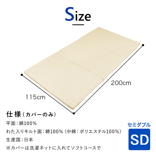 ひなたのふとん HOME 布団カバー敷布団カバーセミダブル マットレスセミダブル 宝箱セール ry0123SDエアーアスリート三つ折りタイプのカバー セミダブルサイズ ry0216sd 価格: ¥4,890 (税込) ~ ¥5,890 (税込) [ポイント還元 48ポイント~] 販売期間: 数量: 個 カラー価格在庫購入アイボリー¥5,890(税込)○ ブラック¥4,890(税込)○ ベージュ¥4,890(税込)○ カラー価格在庫購入アイボリー¥5,890(税込)○ ブラック¥4,890(税込)○ ベージュ¥4,890(税込)○ 返品についての詳細はこちら 商品説明 サイズ 115cm×200cm 平面 綿100% わた入りキルト面 綿100%(中綿:ポリエステル100%) 生産国 日本 ※カバーは洗濯ネットに入れてソフトコースで。