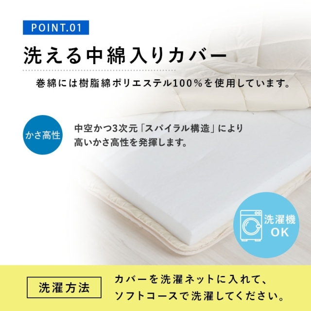 | 注意事項 | ※2枚に分かれて洗濯機で洗える(洗濯ネットに入れソフト洗い、掛け干し) |