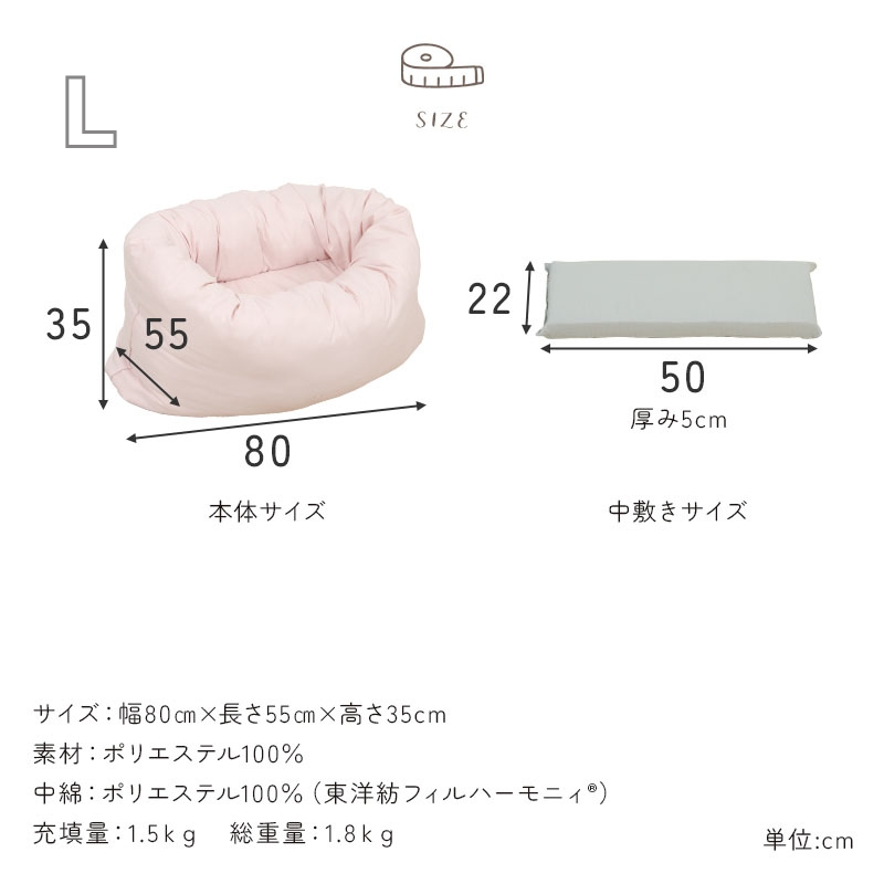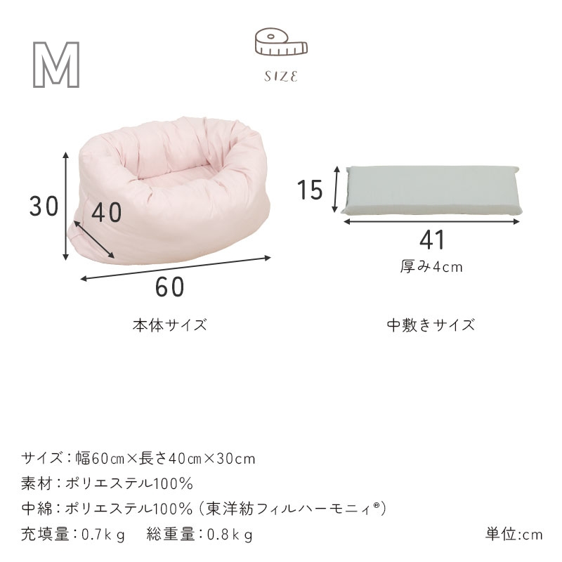 ひなたのふとん HOME ペット用 商品一覧 いぬのふとん 「OFURO」 ペットベッド 猫用 犬用 ペット 小型犬 洗える ry0224inu 価格: ¥4,890 (税込) ~ ¥6,990 (税込) [ポイント還元 48ポイント~] 販売期間: 数量: 個 サイズカラー価格在庫購入Mバニラ¥4,890(税込)○ ピュアホワイト¥4,890(税込)○ ココアブラウン¥4,890(税込)○ アッシュグレー¥4,890(税込)○ パウダーピンク¥4,890(税込)○ ソーダ¥4,890(税込)○ Lバニラ¥6,990(税込)○ ピュアホワイト¥6,990(税込)○ ココアブラウン¥6,990(税込)○ アッシュグレー¥6,990(税込)○ パウダーピンク¥6,990(税込)○ ソーダ¥6,990(税込)○ サイズカラー価格在庫購入Mバニラ¥4,890(税込)○ ピュアホワイト¥4,890(税込)○ ココアブラウン¥4,890(税込)○ アッシュグレー¥4,890(税込)○ パウダーピンク¥4,890(税込)○ ソーダ¥4,890(税込)○ Lバニラ¥6,990(税込)○ ピュアホワイト¥6,990(税込)○ ココアブラウン¥6,990(税込)○ アッシュグレー¥6,990(税込)○ パウダーピンク¥6,990(税込)○ ソーダ¥6,990(税込)○ 返品についての詳細はこちら 商品説明 サイズ M:(本体)60×40×30cm(中敷き)41×15×4cmL:(本体)80×55×35cm(中敷き)50×22×5cm 側地 ポリエステル100% 中綿 ポリエステル100%(東洋紡フィルハーモニィ) 詰め物重量 M:(本体)0.7kgL:(本体)1.5kg 総重量 M:0.9kg(中敷き含む)L:1.8kg(中敷き含む) 注意点 取り外しできる中敷き付き※洗濯できます。洗濯ネットに入れてソフトコースで、掛け干ししてください。タンブラー乾燥不可
