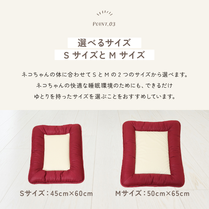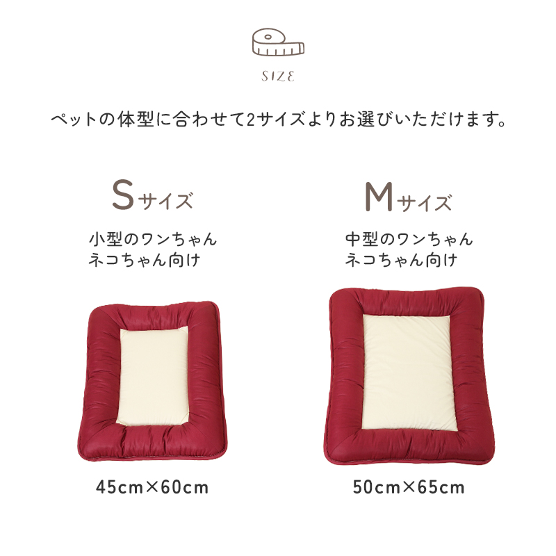 ひなたのふとん HOME 商品一覧 ペット用 しっかり体をささえるペット用敷布団 S/M 日本製 ry0237 価格: ¥5,990 (税込) ~ ¥6,550 (税込) [ポイント還元 59ポイント~] 販売期間: 数量: 個 サイズカラー価格在庫購入Sアイボリー¥5,990(税込)○ ブラウン¥5,990(税込)○ ワインレッド¥5,990(税込)○ ネイビー¥5,990(税込)○ ブラック¥5,990(税込)○ Mアイボリー¥6,550(税込)○ ブラウン¥6,550(税込)○ ワインレッド¥6,550(税込)○ ネイビー¥6,550(税込)○ ブラック¥6,550(税込)○ サイズカラー価格在庫購入Sアイボリー¥5,990(税込)○ ブラウン¥5,990(税込)○ ワインレッド¥5,990(税込)○ ネイビー¥5,990(税込)○ ブラック¥5,990(税込)○ Mアイボリー¥6,550(税込)○ ブラウン¥6,550(税込)○ ワインレッド¥6,550(税込)○ ネイビー¥6,550(税込)○ ブラック¥6,550(税込)○ 返品についての詳細はこちら 商品説明 サイズ S:45×60cmM:50×65cm 生地 綿100% 中綿 ポリエステル100%(東洋紡フィルハーモニィ) 中芯 固綿ポリエステル100% 総重量 S:0.55kgM:0.75kg 生産国 日本製