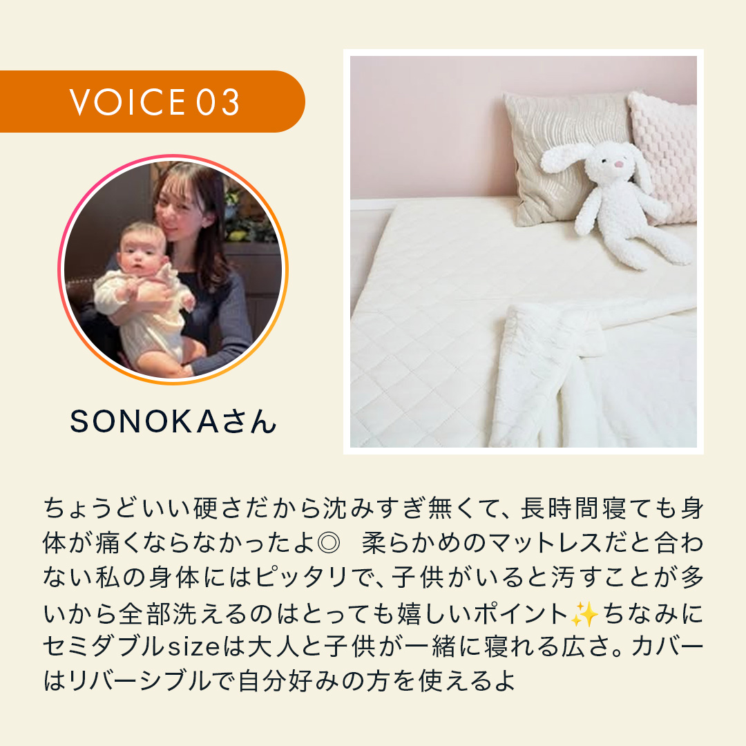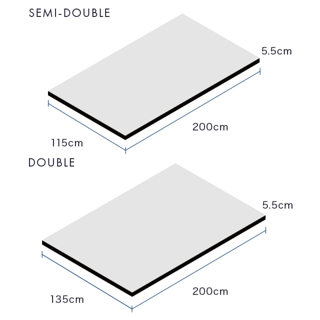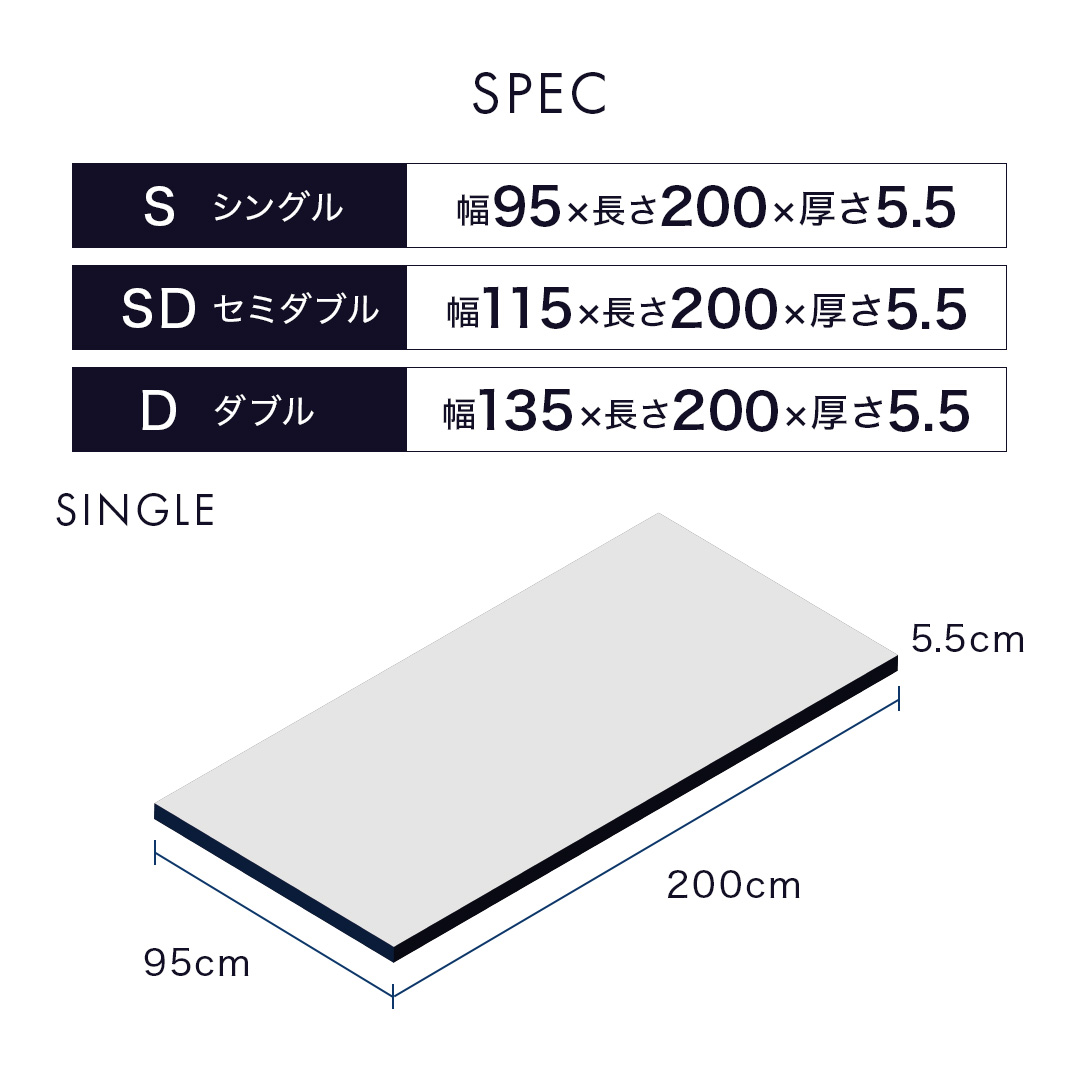 | サイズ | S:95×200cm SD:115×200cm D:135×200cm |